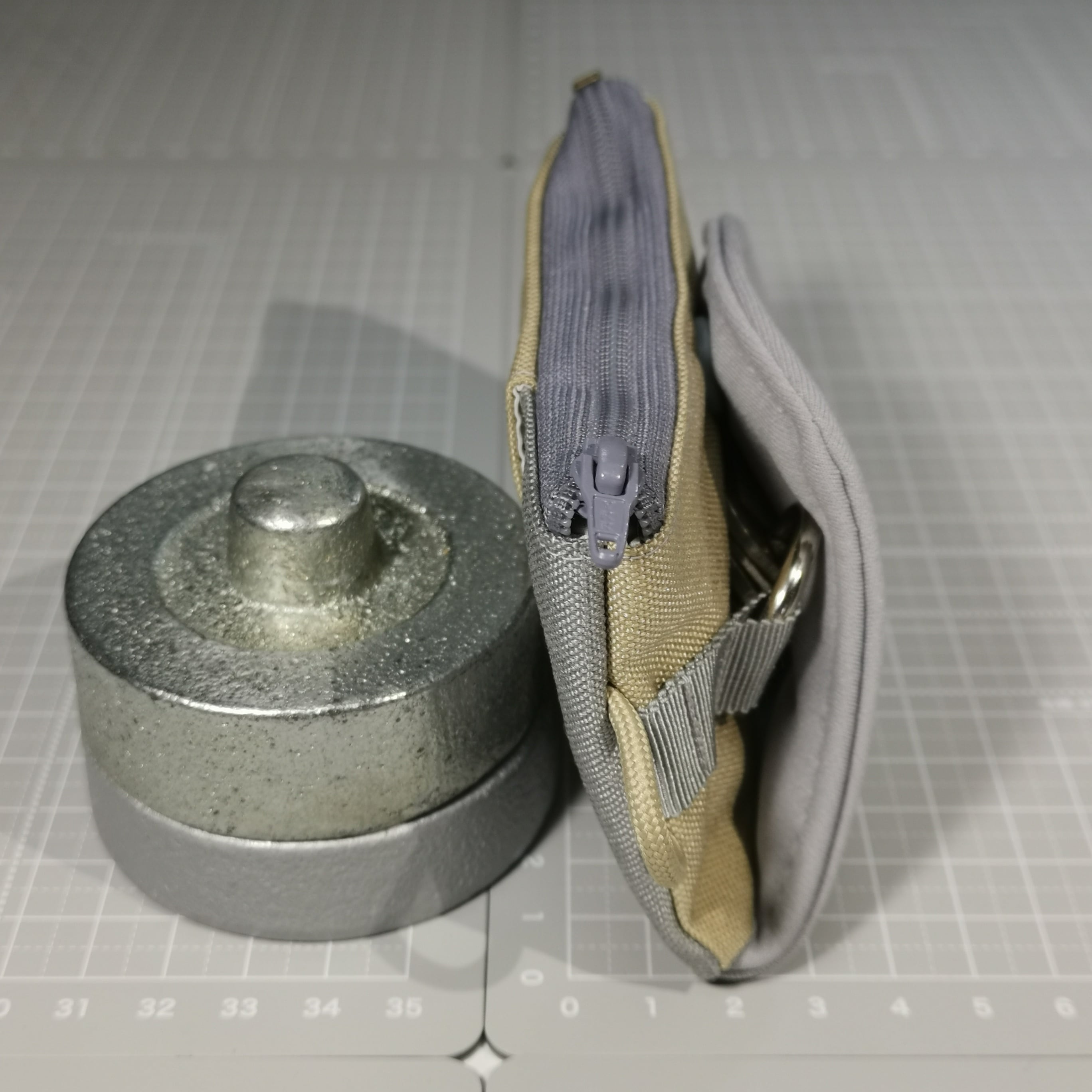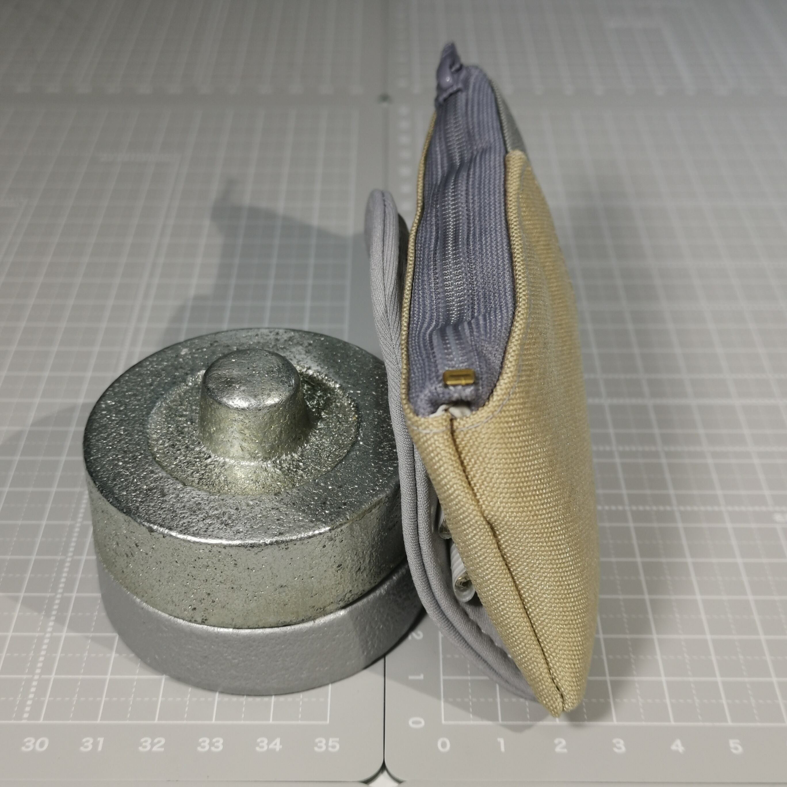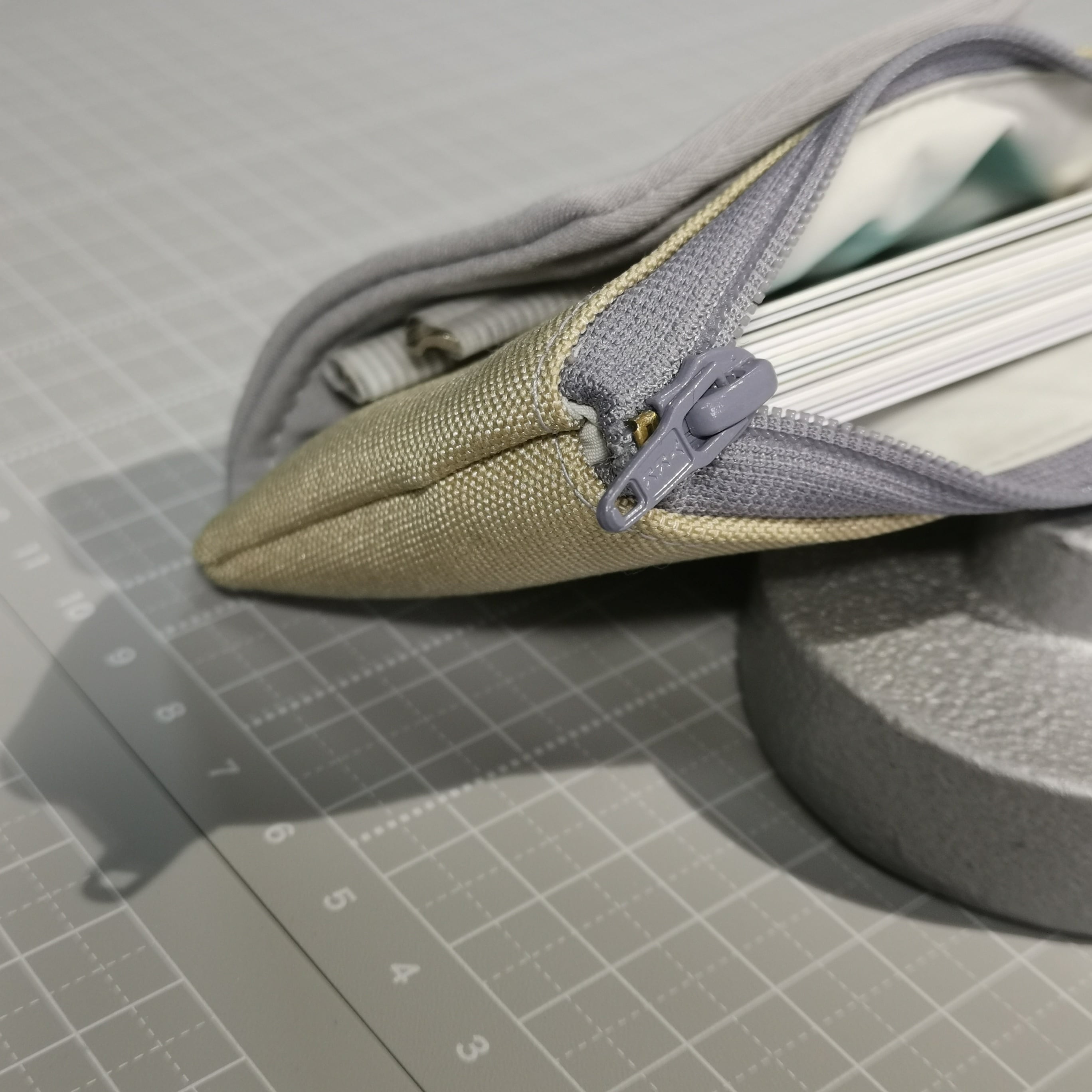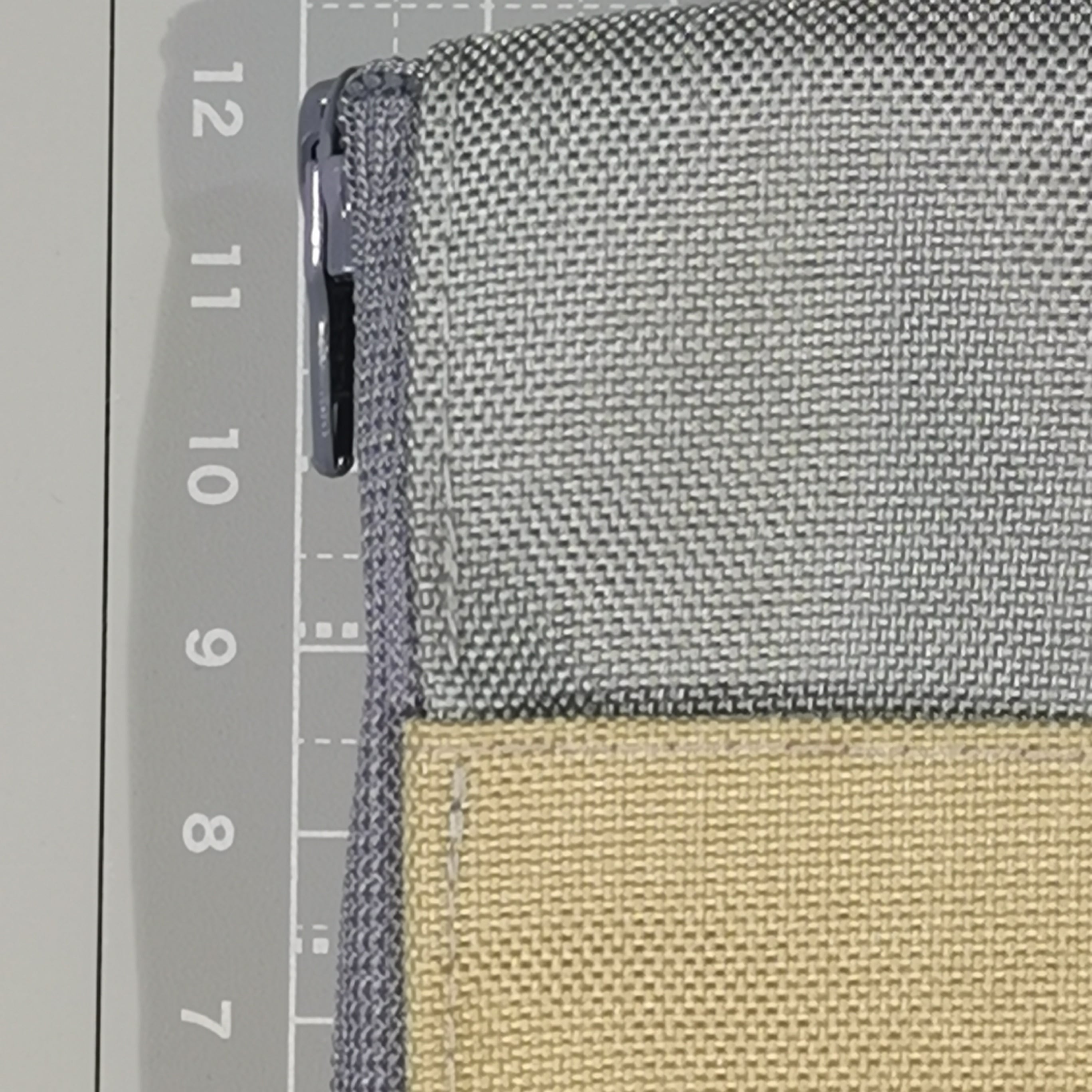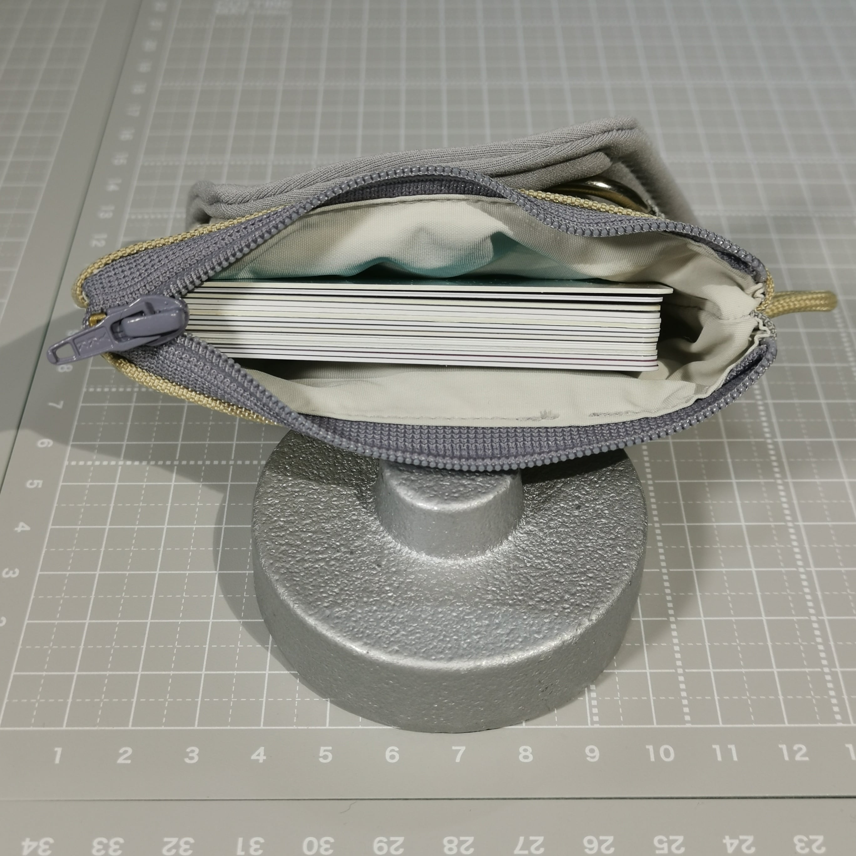 裏地は、グレーとベージュの中間色(グレージュ)で、リングはシルバーです。