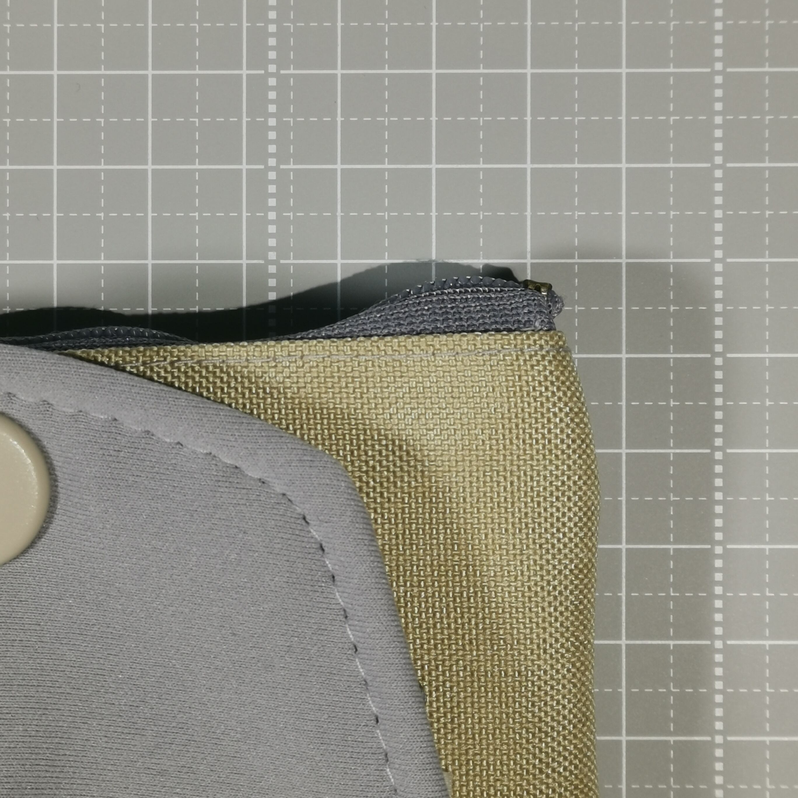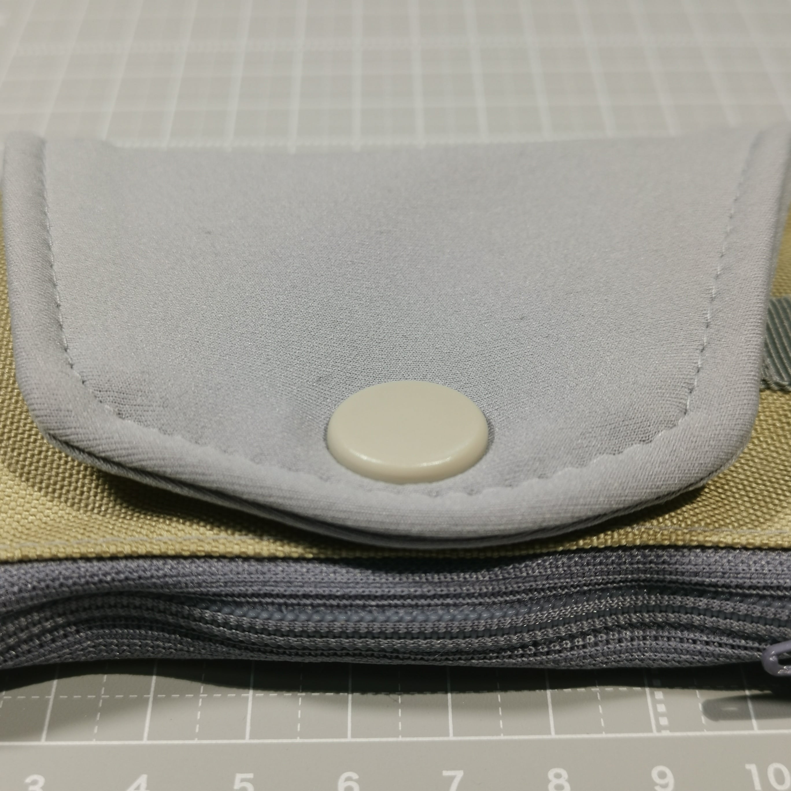 グレーは、カバー、帯、ホックの本体側、ファスナー、本体のポケット側です。