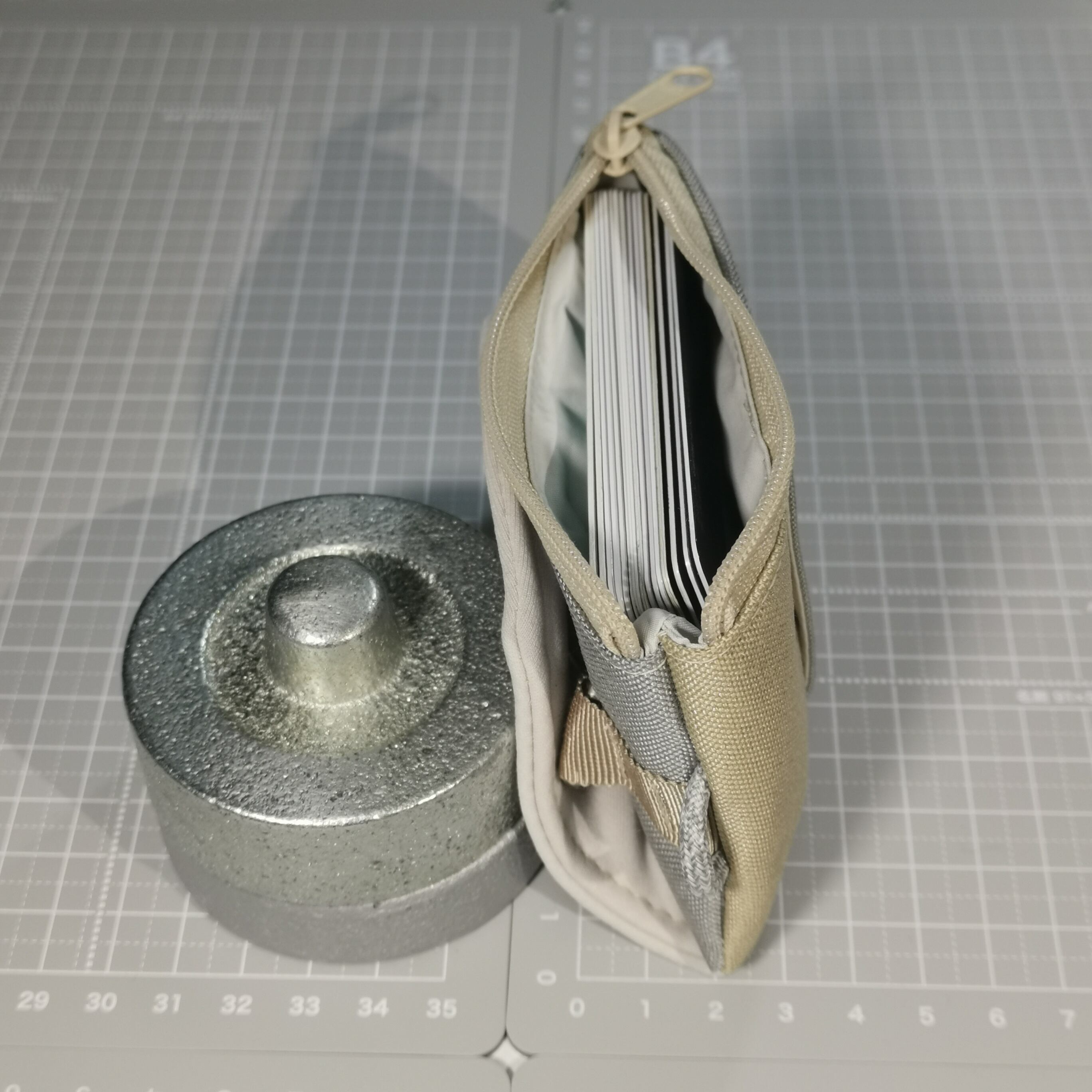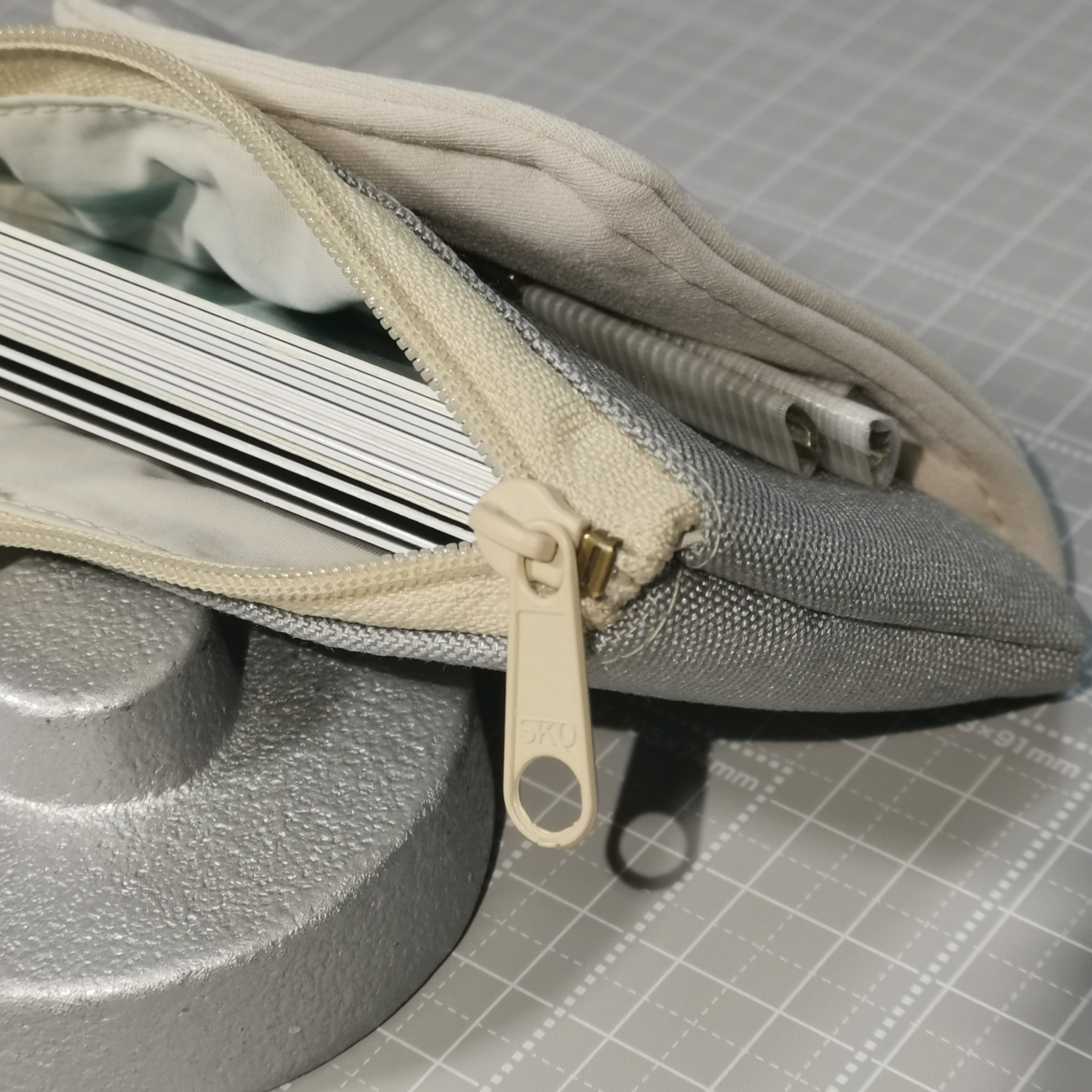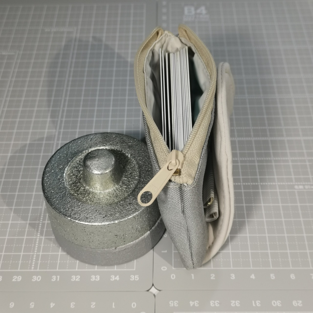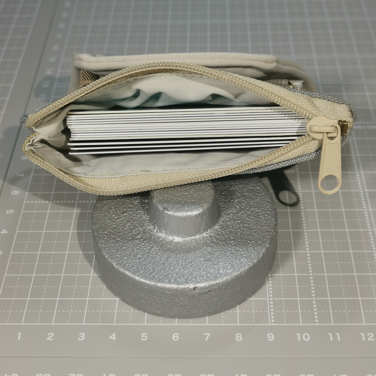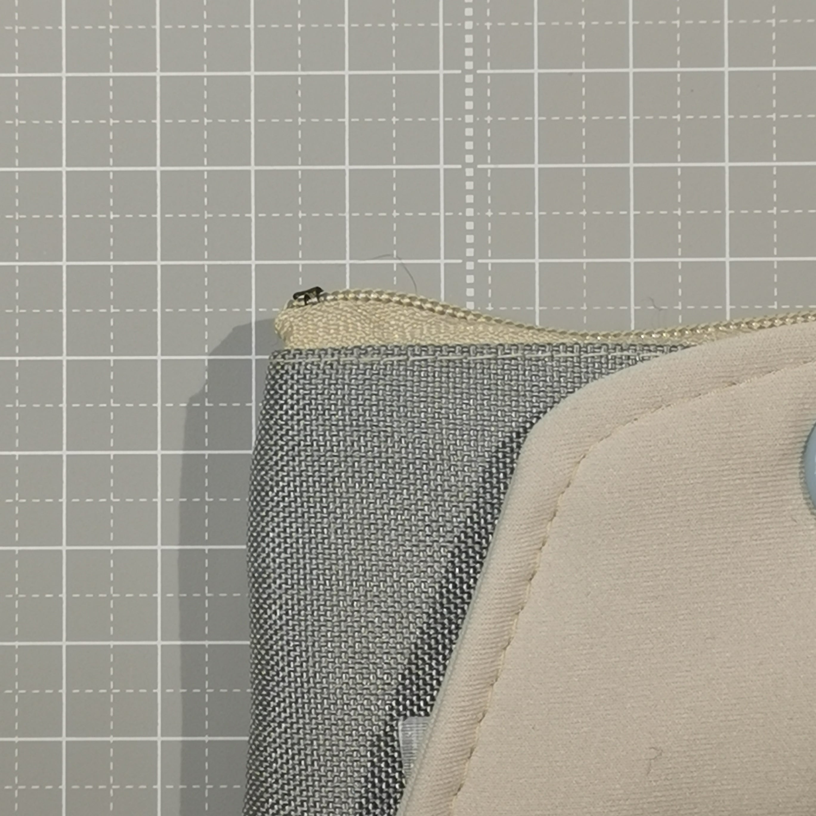 裏地は、グレーとベージュの中間色(グレージュ)で、リングはシルバーです。
