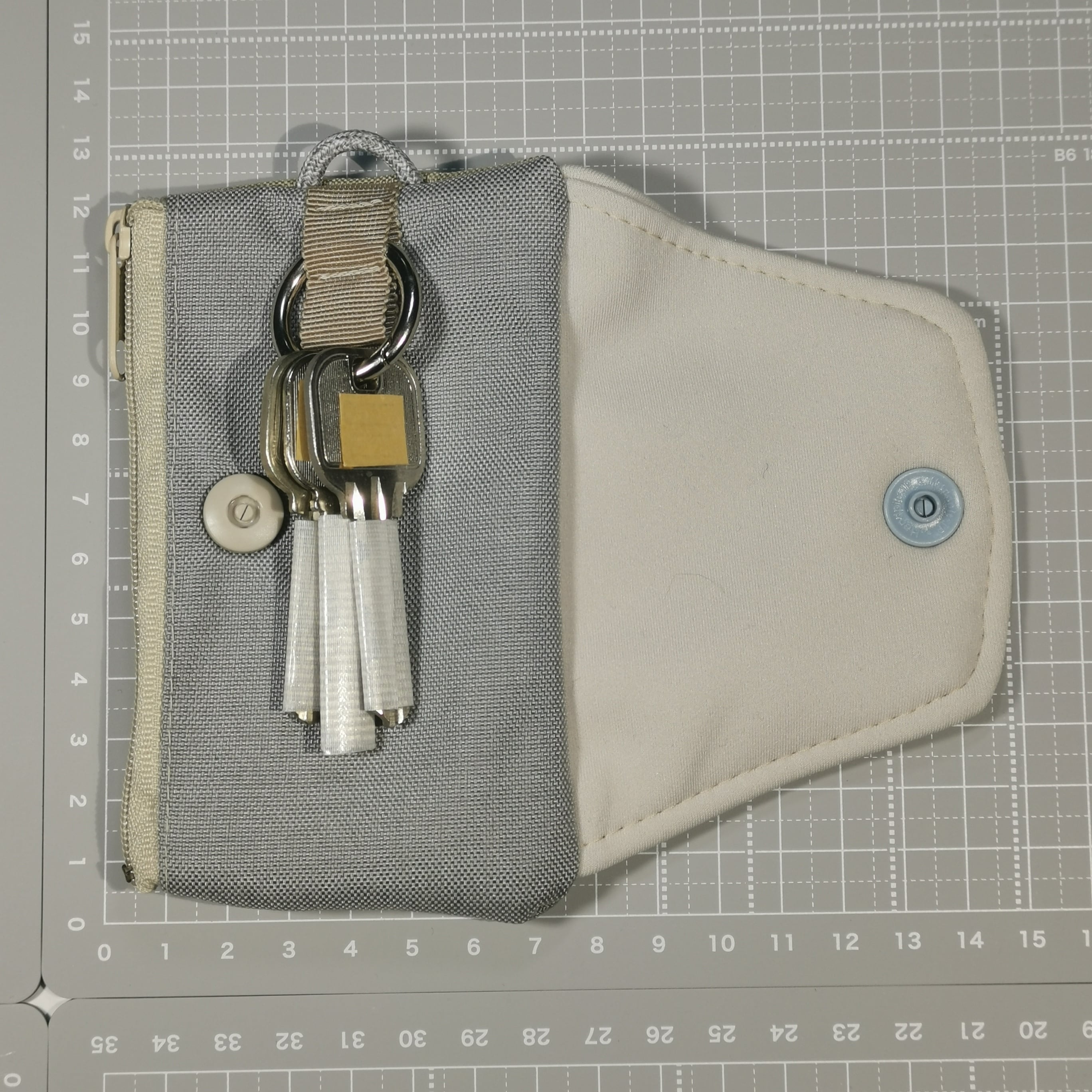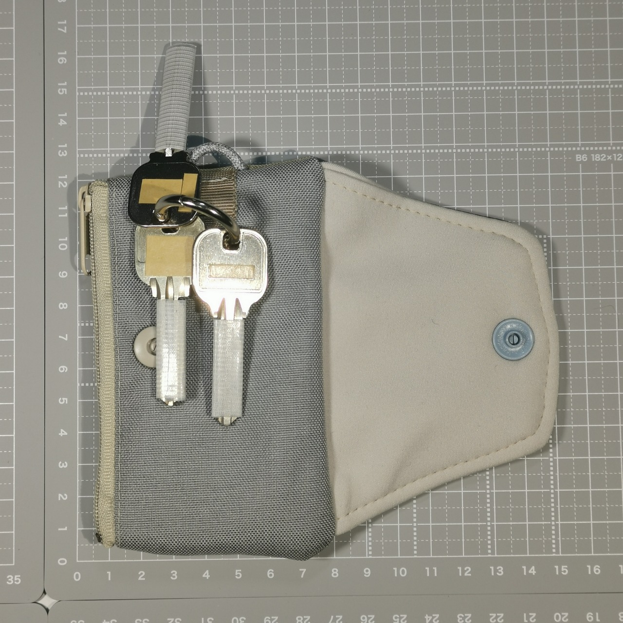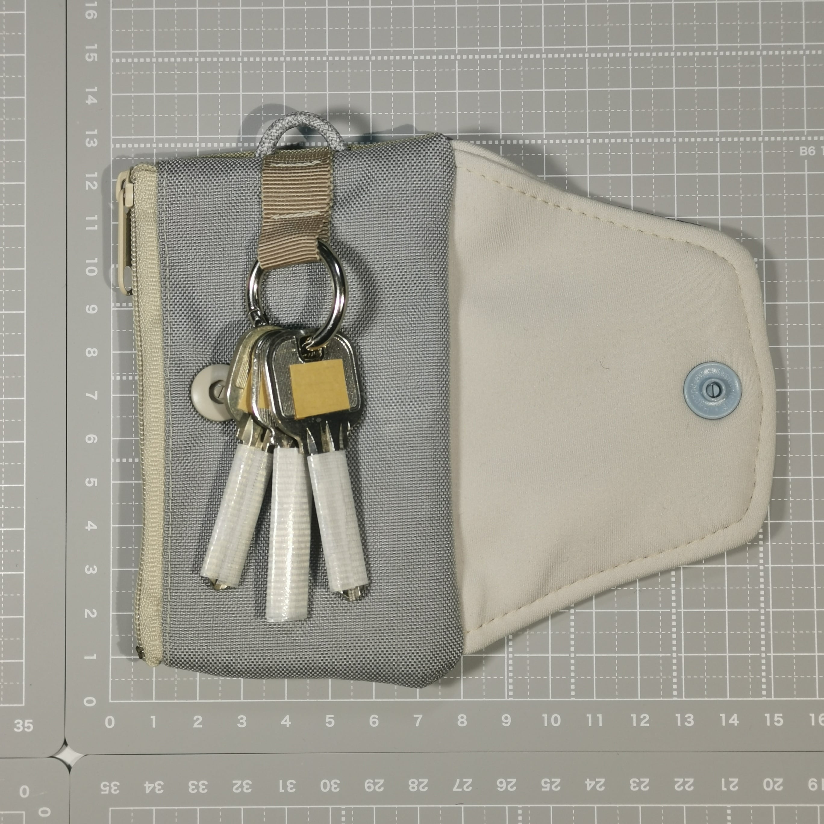 グレーは、本体のキー側、ひも、ポケット、ホックのカバー側です。