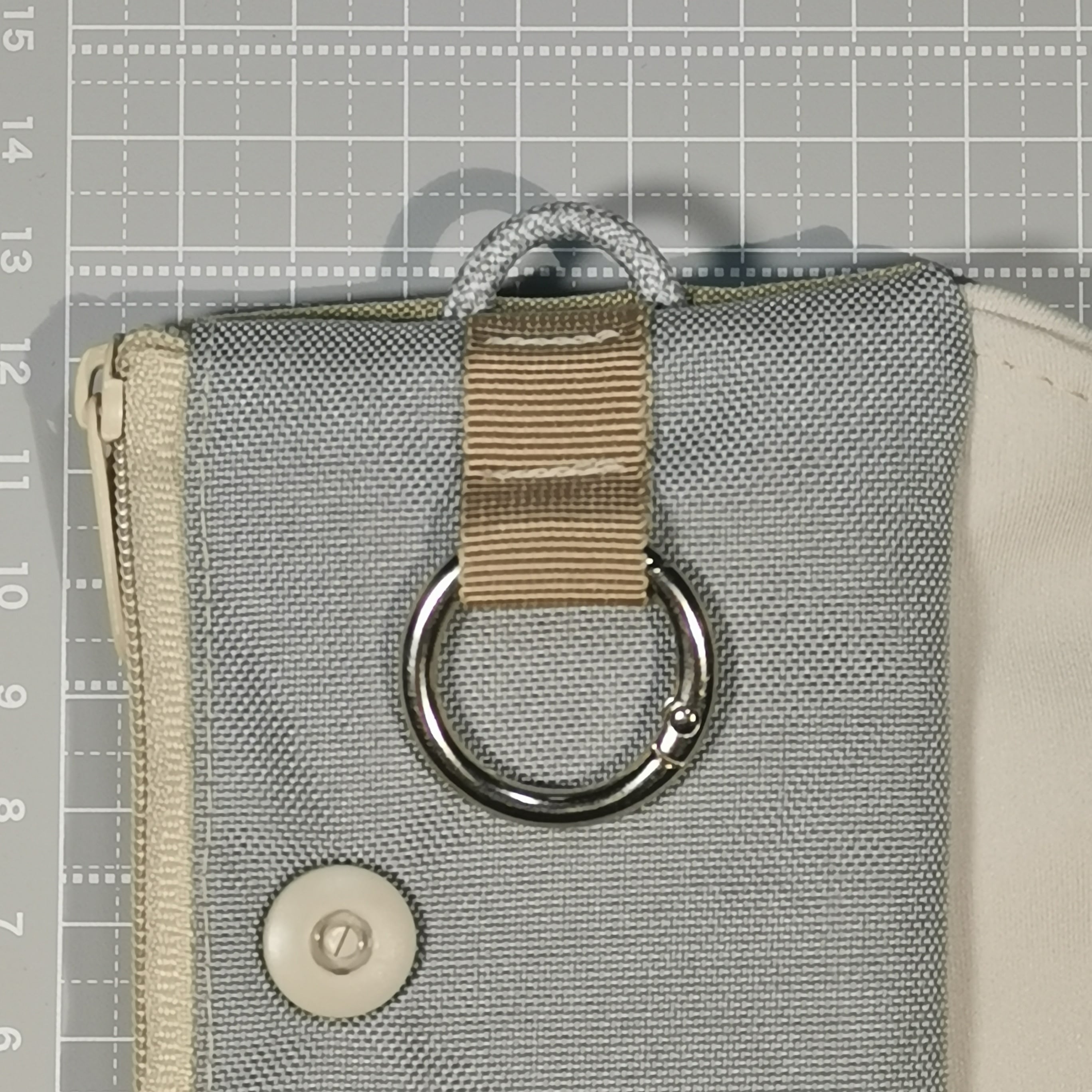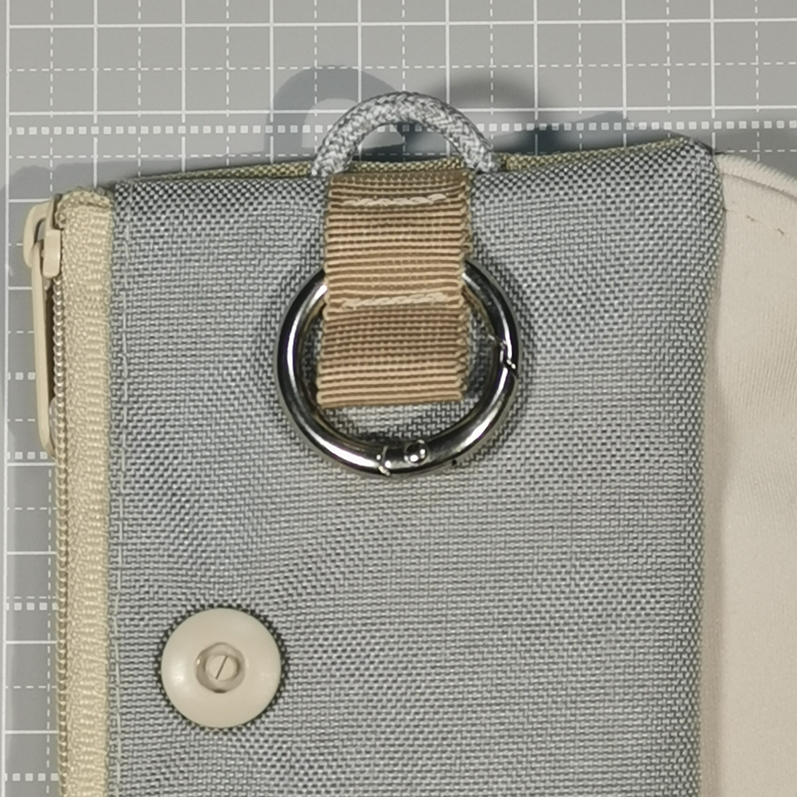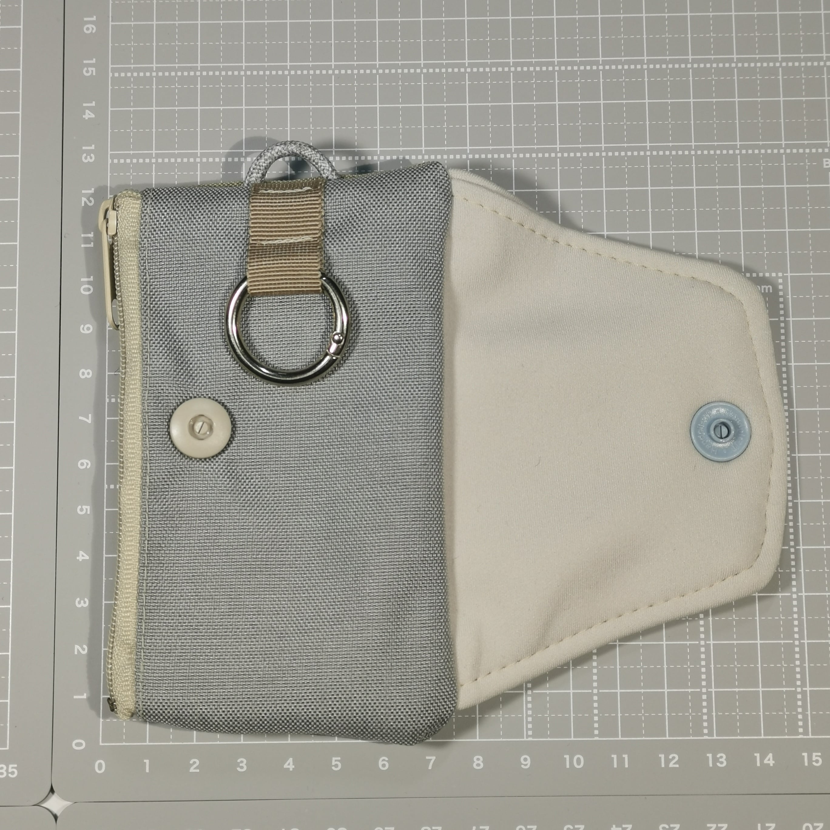 グレーは、本体のキー側、ひも、ポケット、ホックのカバー側です。
