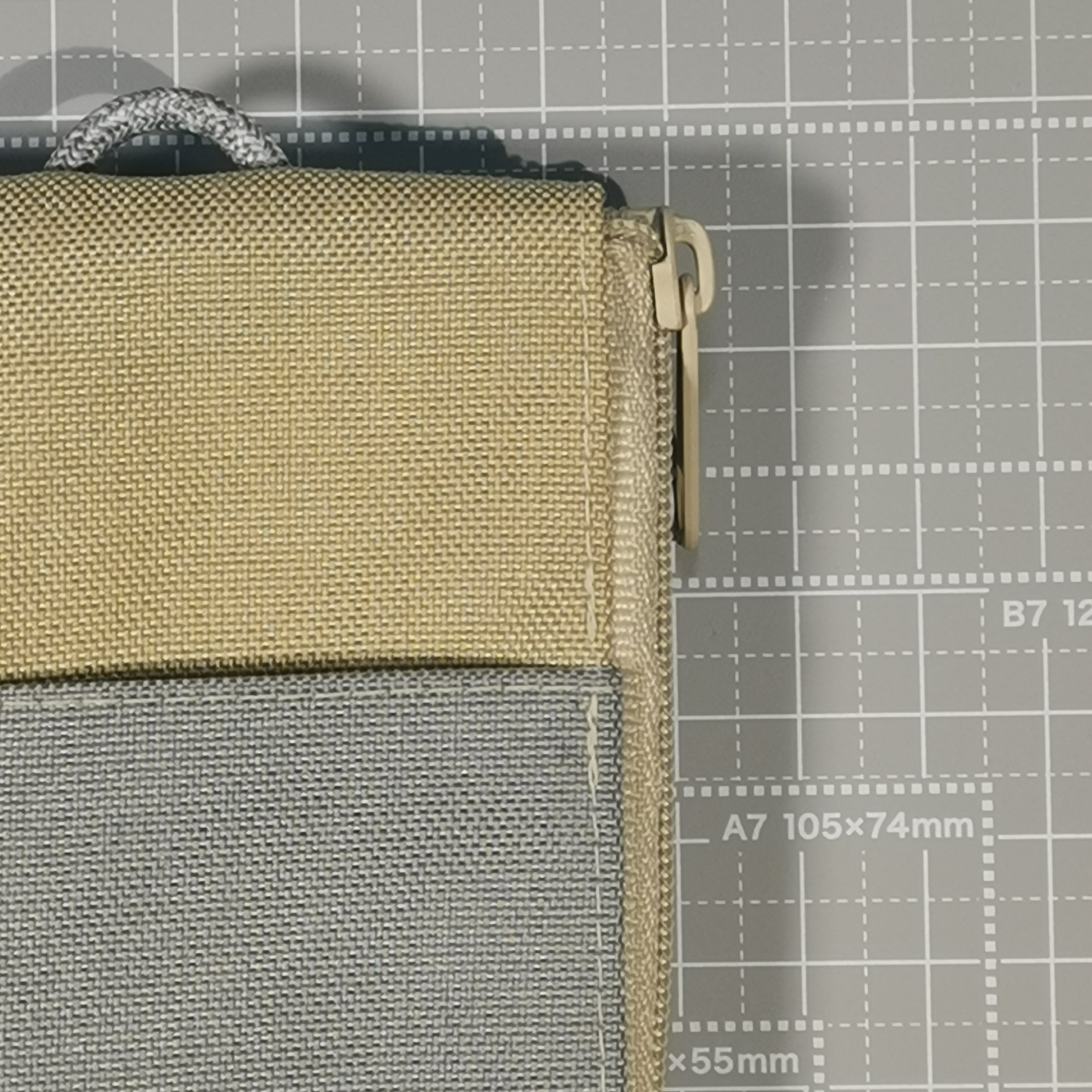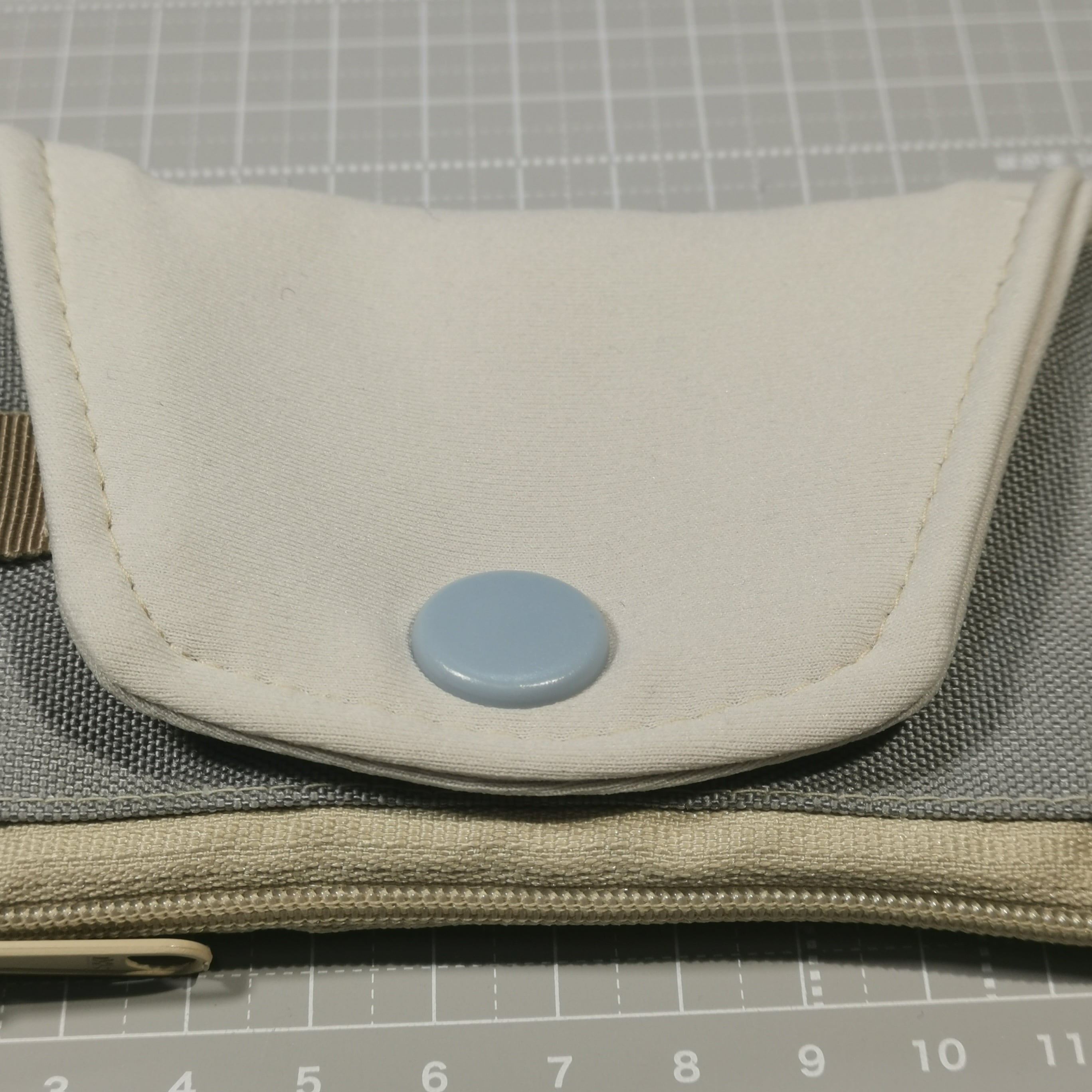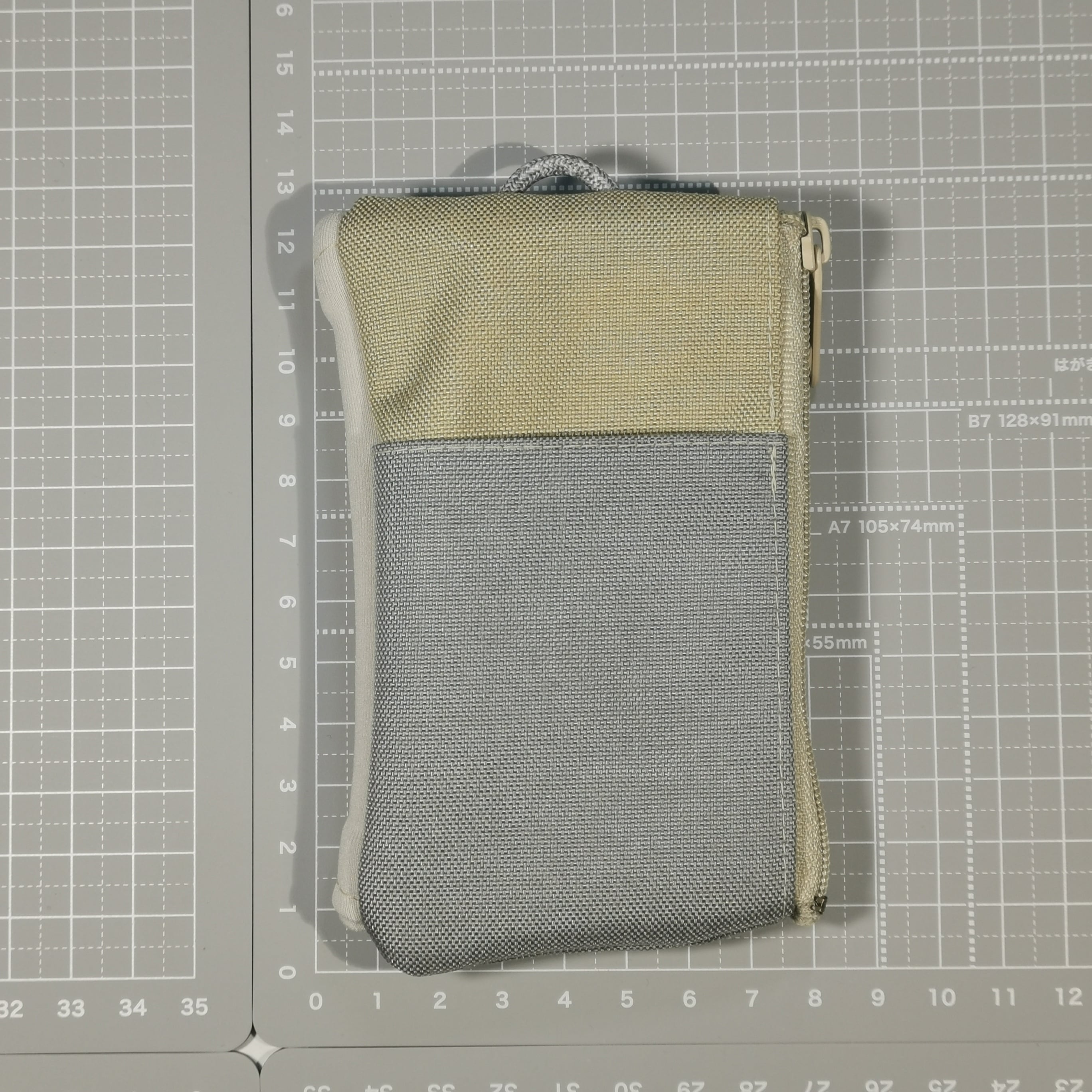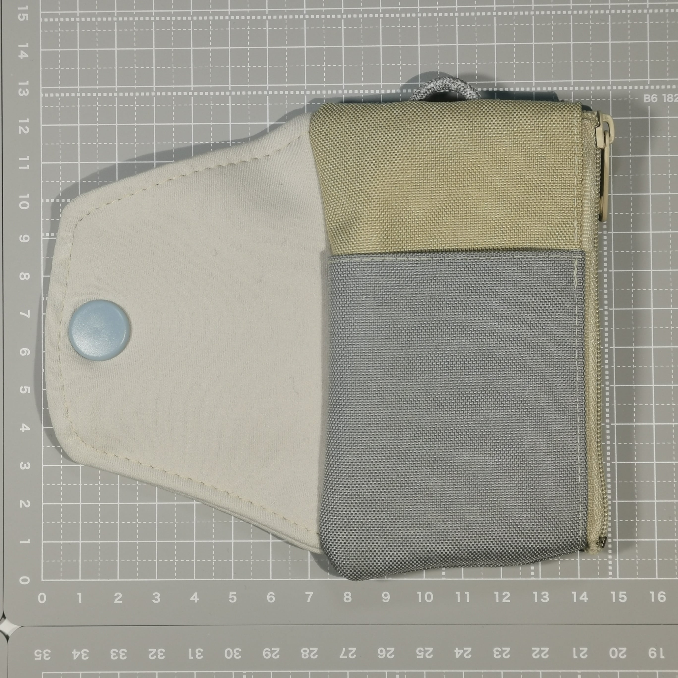 ベージュは、カバー、帯、ホックの本体側、ファスナー、本体のポケット側です。